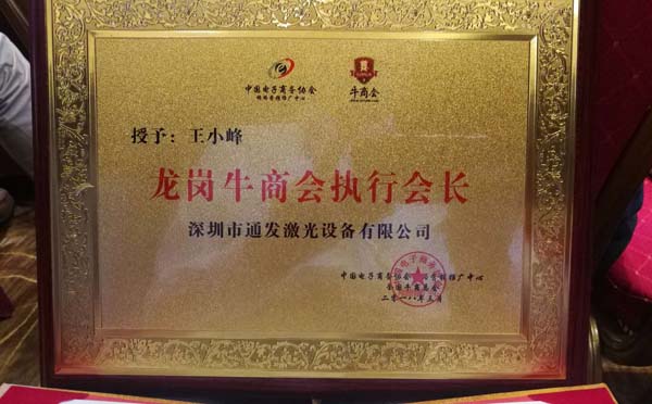 深圳市龍崗牛商會執(zhí)行會長,深圳市通發(fā)激光設備有限公司副董事長王小峰從深圳上千企業(yè)家中脫穎而出,同其他九位優(yōu)秀企業(yè)家共同獲得了第九屆深圳十大牛商的殊榮。