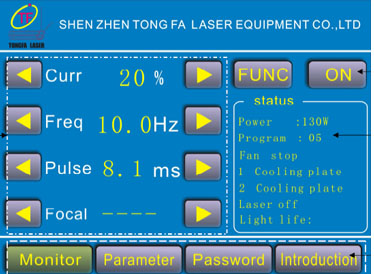 3、 本模具激光焊機(jī),提供了液晶護(hù)眼光閘的時(shí)間設(shè)置,針對(duì)不同的脈寬,可設(shè)置不同的擋光時(shí)間,保護(hù)操作工眼睛不受到激光的閃眼不舒服感。