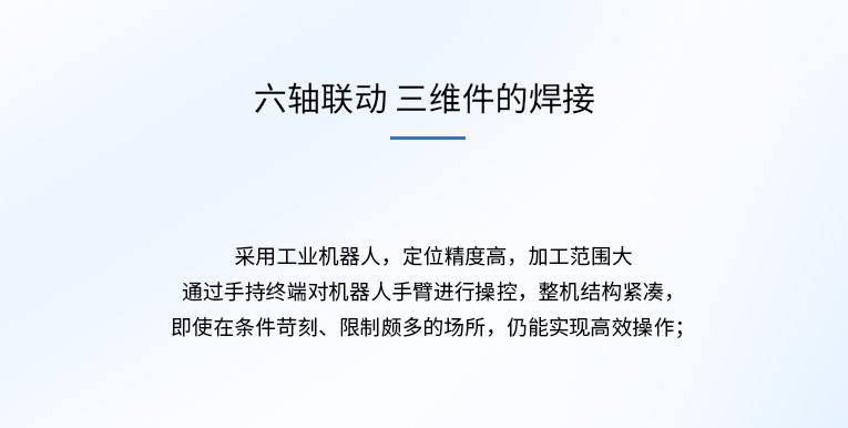 通發(fā)激光機(jī)械臂機(jī)器人激光焊接機(jī),采用機(jī)械手六軸聯(lián)動,對三維件五金件進(jìn)行3D精密焊接,非接觸式焊縫跟蹤系統(tǒng),多工位協(xié)調(diào)工作,可實生產(chǎn)智能化,自動化,省時省力更省工,全方位降低生產(chǎn)成本。